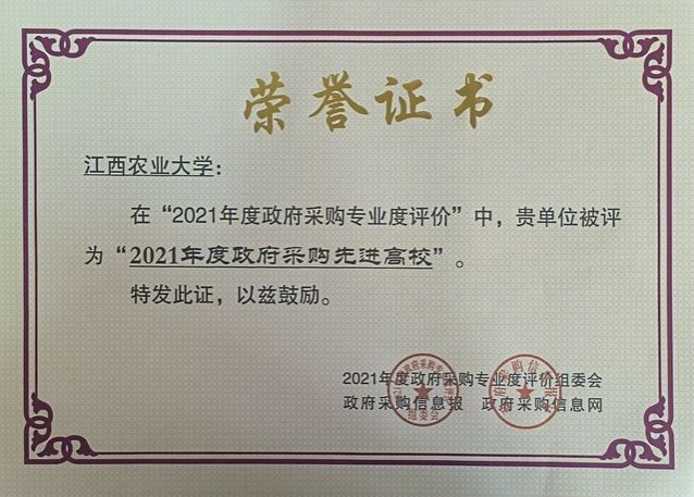 日前,ac米兰在“2021年度政府采购专业度评价”中获评“政府采购先进高校”,这是ac米兰首次获得这一荣誉。