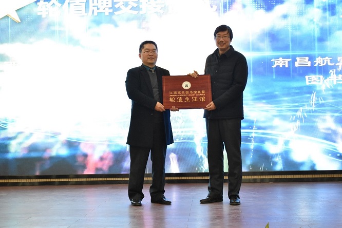 在2020年度江西高校图书馆联盟年会上,江西财经大学图书馆馆长贺三宝作《江西高校图书馆联盟2020年工作总结》。轮值牌交接仪式上,南昌航空大学龚勇清接过了贺三宝手上的新轮值牌,并在会上作了《江西高校图书馆联盟2021年工作计划》。大会还对联盟一年来涌现的先进单位和先进个人进行表彰。
