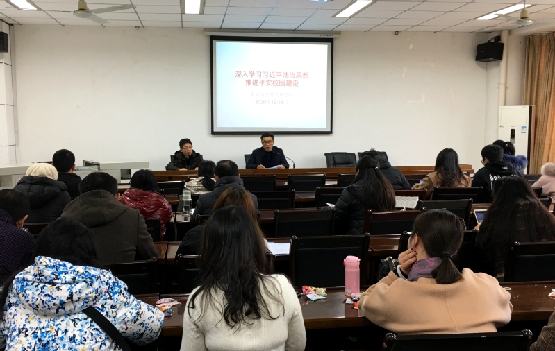 12月8日,人文与公共管理学院在厚德楼院办会议室召开全院教职工大会,深入学习贯彻习近平法治思想,开展《民法典》专题学习,部署平安校园建设工作。会议由院党委书记杨峰主持。