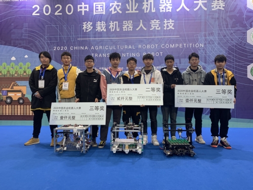 日前,由中国农业机械流通协会、中国农业机械工业协会、中国农业机械化协会主办,中国农业机械学会、中国农业工程学会协办,中国农业大学工学院、青岛农业大学机电工程学院承办的2020中国农业机器人大赛在青岛圆满结束。本次大赛吸引了来自国内10所高校的22支队伍100多人参赛。经过激烈角逐,工学院选派的三支队伍分别取得了全国二等奖、三等奖的好成绩。