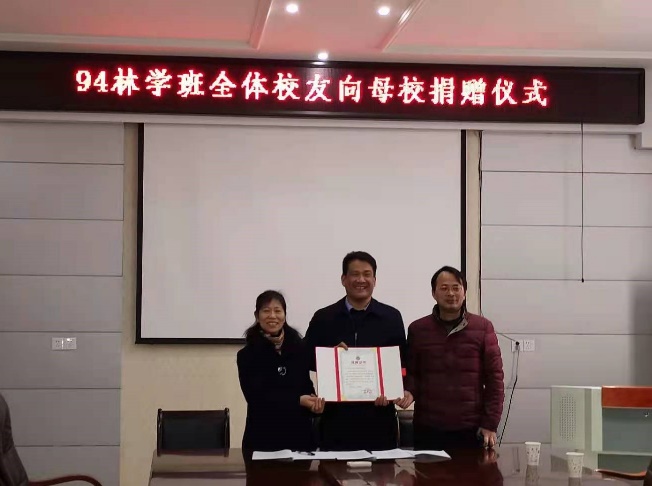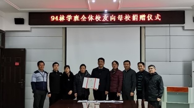 捐赠仪式上,校友代表回忆了自己在校学习时光,感谢母校的教育和培养,祝福学校事业蒸蒸日上。朱小玉与校友代表签订了捐赠协议,向校友代表颁发捐赠证书,赠送学校纪念徽章。杨光耀向94林学班校友此次捐赠表示感谢,希望校友一如既往地关心和支持学校发展,祝愿广大校友事业有成、前程似锦。