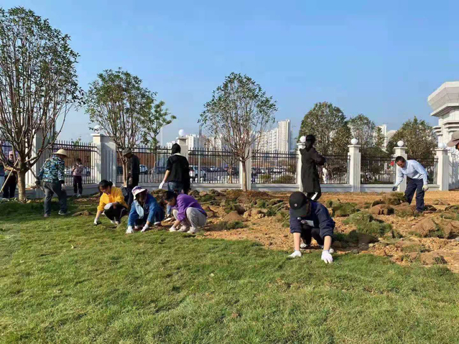 活动期间,校园建设处工作人员为同学们介绍学校南大门设计规划、精致建设及绿化景观理念,现场讲授土方回填、地形整理、松土除石、草坪铺植、树木种植及劳动要领,希望广大同学积极参与,为美丽校园“补绿添彩”。在老师的带领下,同学们平整场地、铺植绿草、规整绿篱,热情高涨、干劲十足,以实际行动将美丽校园增加一片新绿,增添一抹盛装。同学们纷纷表示,在校庆来临之际,能够结合专业知识参与美丽校园建设,感到光荣又幸运,内心充盈又快乐,进一步增强了崇尚劳动、尊重自然、保护生态的意识。