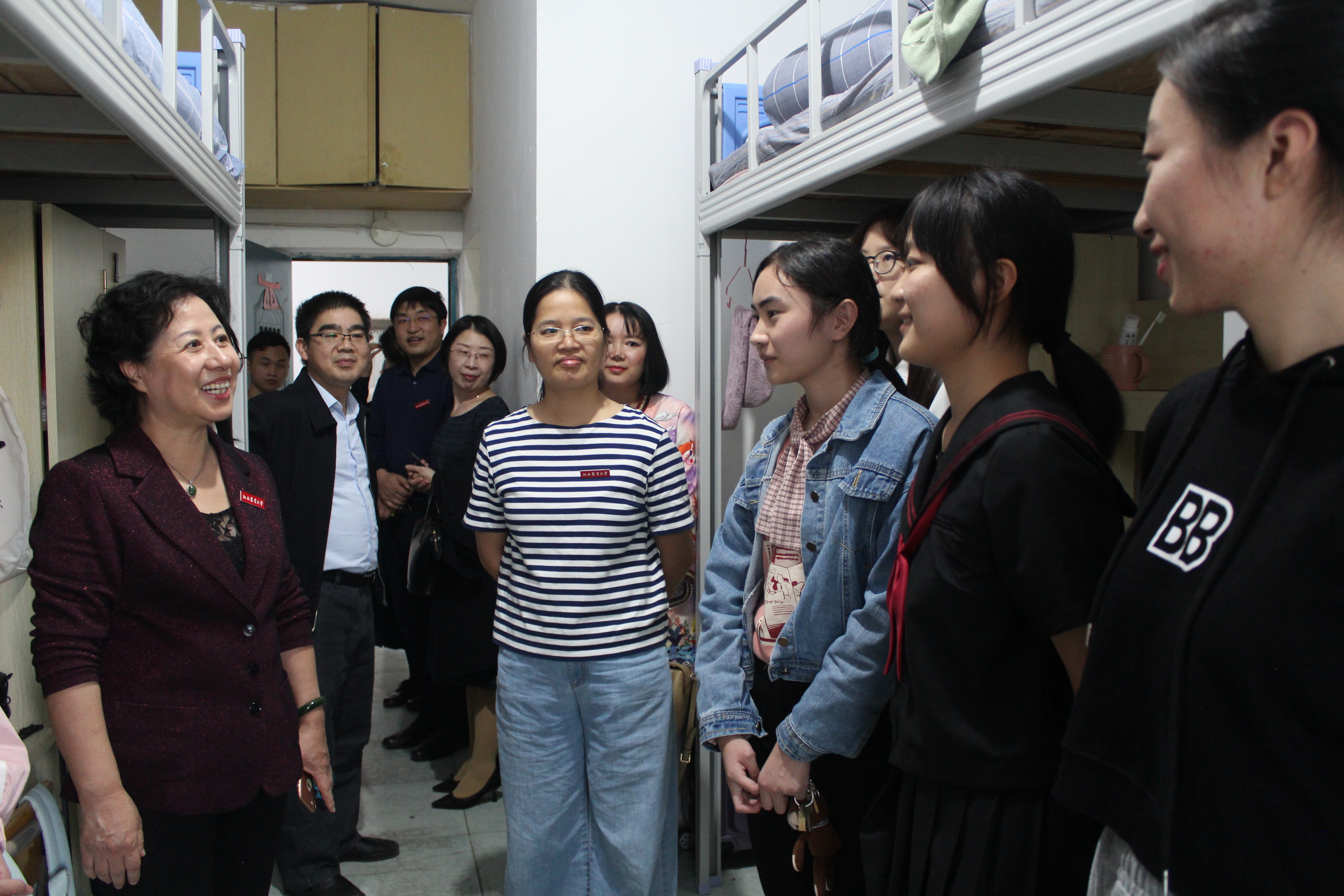 10月10日下午,校纪委书记乔金霞深入学生公寓看望外国语学院2020级本科新生并慰问迎新工作人员。