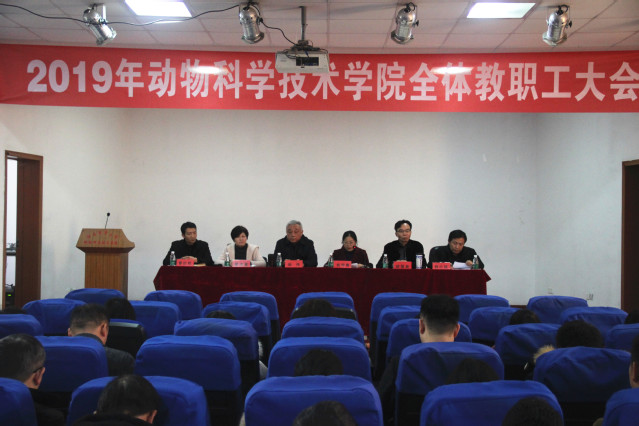 1月8日,动科院在学院办公楼二楼报告厅召开了2019年度教职工大会,校工会主席桂华菊莅临指导,学院全体班子成员出席。会议由院党委副书记廖述香主持。