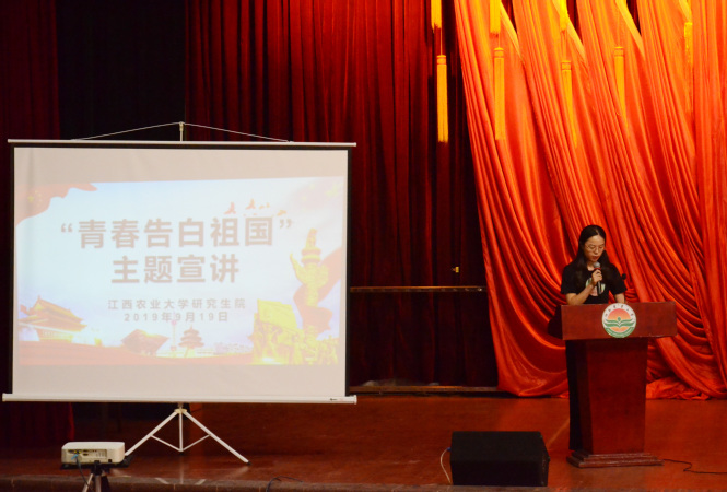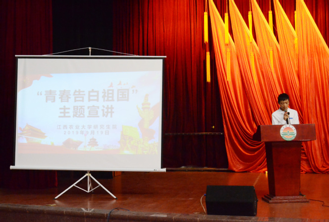 今年是新中国成立70周年,为教育引导研究生深入学习贯彻习近平新时代中国特色社会主义思想,厚植爱国情怀,激发报国之志,自觉砥砺意志品质、涵养道德修养、练就过硬本领,争做担当民族复兴大任的时代新人。研究生院团总支招募研究生宣讲团队,以赤子之情、青春之名、奋斗之行动向祖国告白。