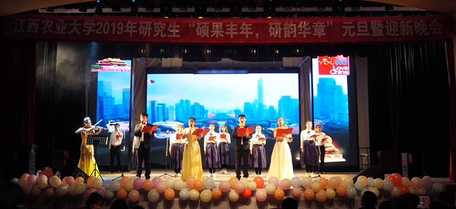 12月27日晚,以“硕果丰年,研韵华章”为主题的 2019年研究生元旦暨迎新晚会在人文院音乐厅举行。校党委副书记胡春晓、副校长曾志将、学校相关职能部门负责人以及来自全校400余名研究生观看了本场晚会。