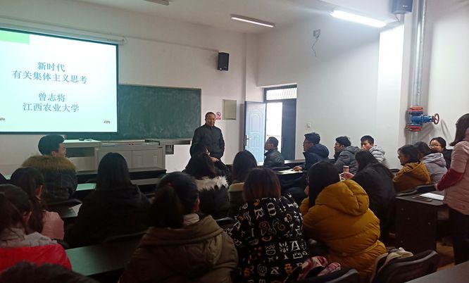 12月11日,副校长曾志将以《学习全国教育大会精神》和《新时代有关集体主义思考》为主题分别给食品学院全体教师和食工1601班学生上思政课。曾志将深入解读了全国教育大会精神、习近平新时代中国特色社会主义思想,结合蜜蜂有核心意识、有团队精神、有奉献精神等生物特性,勉励师生们增强“四个自信”和“四个意识”,正确认识时代责任和历史使命,弘扬爱国主义、集体主义精神,脚踏实地,勇于奋斗,为实现中华民族伟大复兴贡献力量。