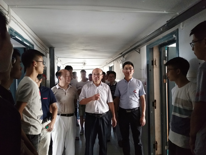 9月15日,副校长刘木华带领工学院全体班子成员、学工办老师和2018级新生班主任走进新生宿舍,向新生及新生家长表达亲切的问候。