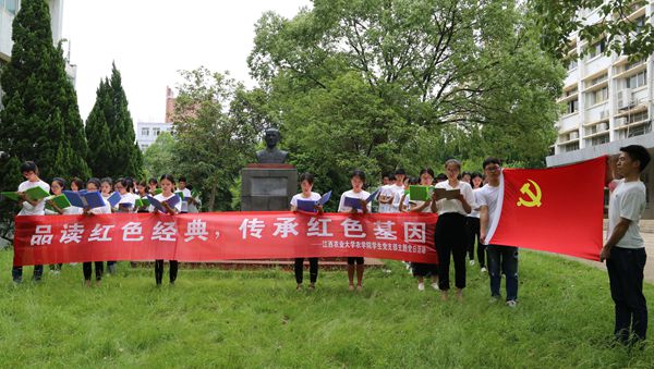 活动中,全体学生党员在杨惟义院士雕像前集体诵读李大钊《狱中自述》节录——《谋中国民族之解放》、裘古怀写给党和同志的遗书《胜利的时候,请你们不要忘记我们》。学生党员用饱含深情的语调,重现了当时一幕幕感人场景,展现了革命志士舍生取义、矢志不渝的革命精神和家国情怀。随后,部分学生党员代表化身为革命先烈的“信使”,深情诵读了黄竞西《望你们继续前进,万勿灰心》、赵一曼《我的孩子要替母亲继续斗争》等烈士遗书,并结合自身学习、工作实际找差距、说体会、谈理想。大家纷纷表示,将会继承革命先烈忠诚如铁的精神,恪尽职守的品格,不忘初心,牢记使命,接续奋斗,做社会主义建设者和接班人,做担当民族复兴大任的时代新人