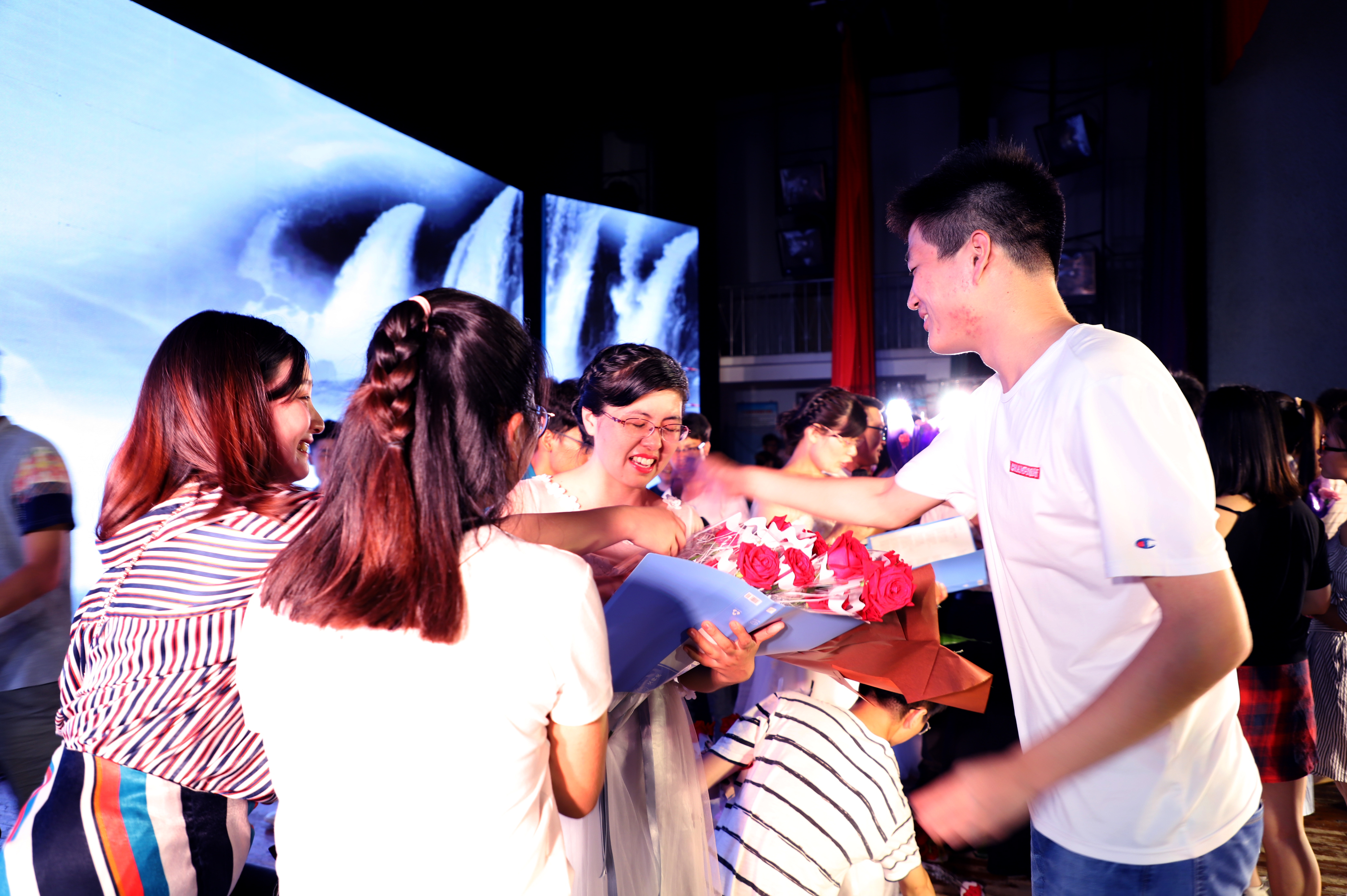 院长胡国良致辞,为毕业生送上美好的祝福。2018届毕业班的辅导员从天南海北发来的祝福视频,温暖寄语毕业生。晚会开场舞《EZW》富有韵律、整齐划一的动作“燃爆”了现场氛围。大合唱《启程》和学生会与团委全体委员合唱歌曲《那些花儿》,唱出了母校对毕业生们顺利启程的美好祝愿。毕业班班主任老师登台齐诵原创诗歌《致毕业生》,向毕业生诉说着依依不舍和殷切期望,深深感动了全体毕业生,大家齐上台与老师们拥抱,为老师们献花。
