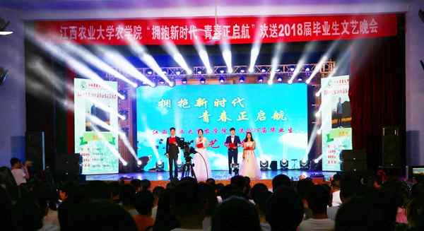 5月5日晚,农学院“拥抱新时代•青春正启航”欢送2018届毕业生文艺晚会在校大礼堂浓情上演,副校长贺浩华、许斌华、党委宣传部等有关职能部门负责人与农学院1200余名师生观看演出。