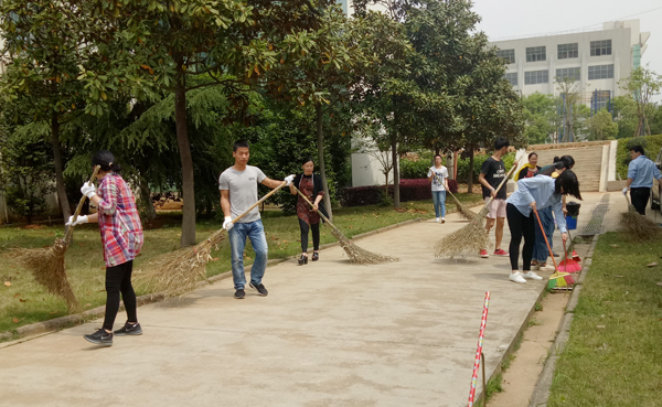 活动过程中,大家既分工又团结协作,不怕脏,不怕累,人人动手拾垃圾、清扫垃圾,在一个半小时内对校办楼周边进行了彻底的清扫,在大家的共同努力下,校办楼周边的环境焕然一新。