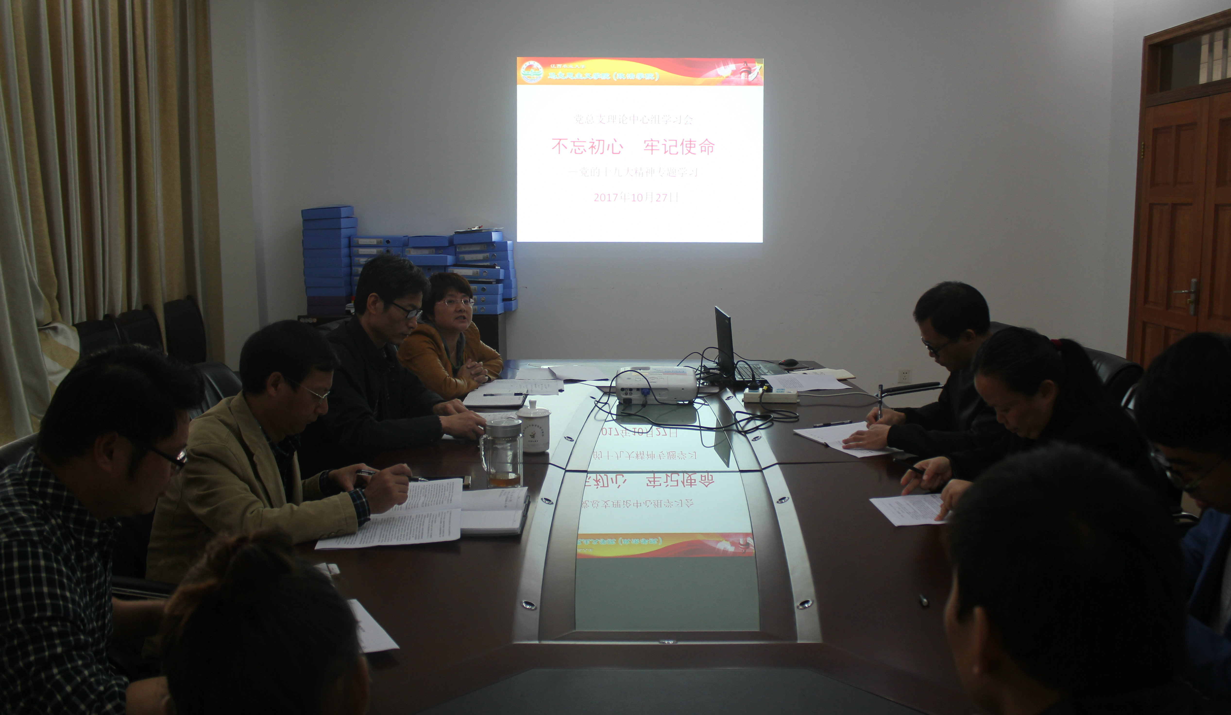 10月27日上午,马克思主义学院召开党总支理论学习中心组扩大会议,学习党的十九大精神。学院党总支委员、各支部委员参加了学习会。党总支书记魏毅主持学习会。