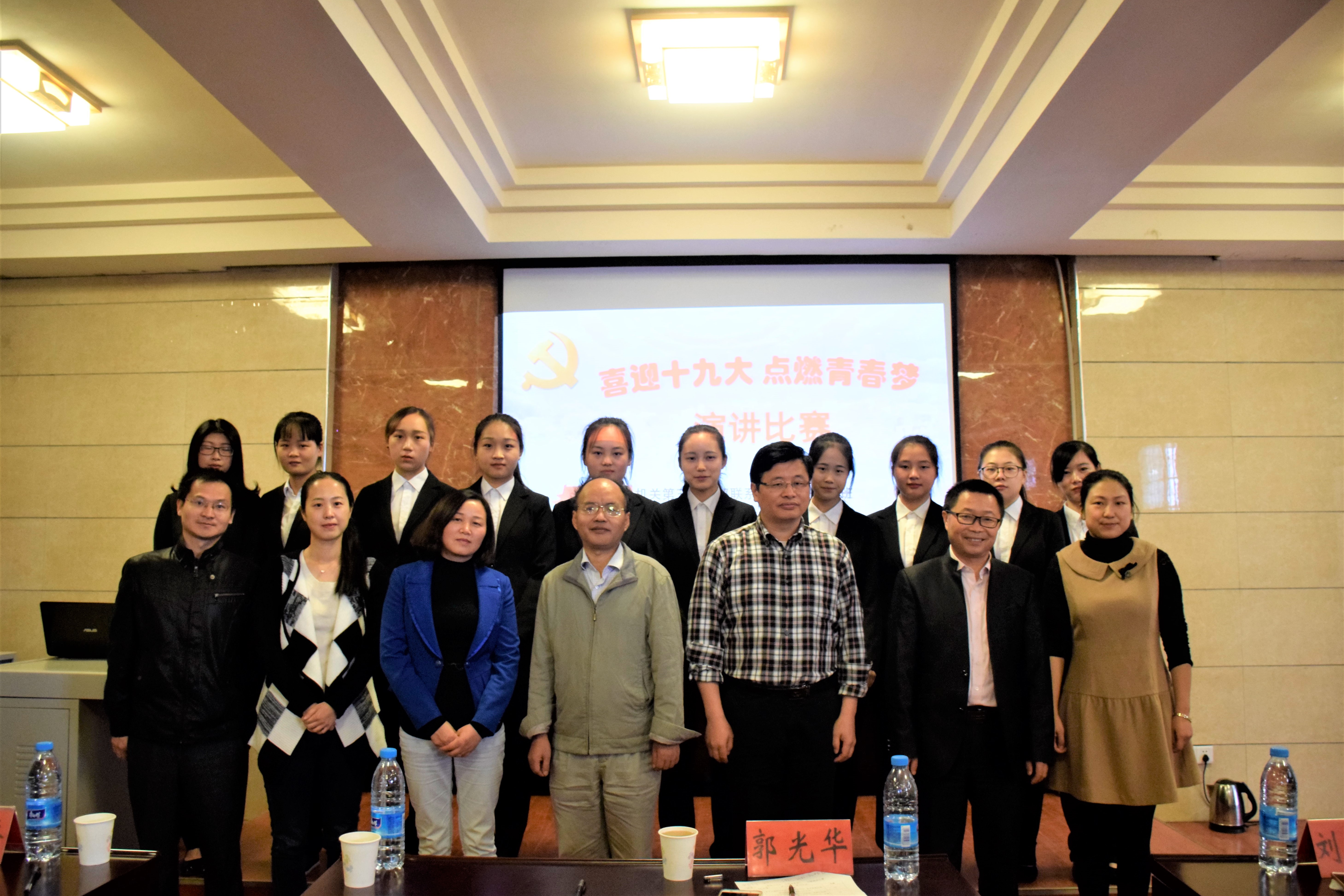 10月14日,在党的十九大胜利召开前夕,为努力在青年学生中营造喜迎党的十九大的浓郁氛围,切实加强对青年学生的思想引领,进一步推进支部联系班级活动取得实效,机关第三党支部联合经济管理学院党委,配合联系班级财务管理1601班成功举办“喜迎十九大,点燃青春梦”主题演讲比赛。机关第三党支部部分成员、经济管理学院党委领导和财务管理1601班班主任观看比赛并担任评委。