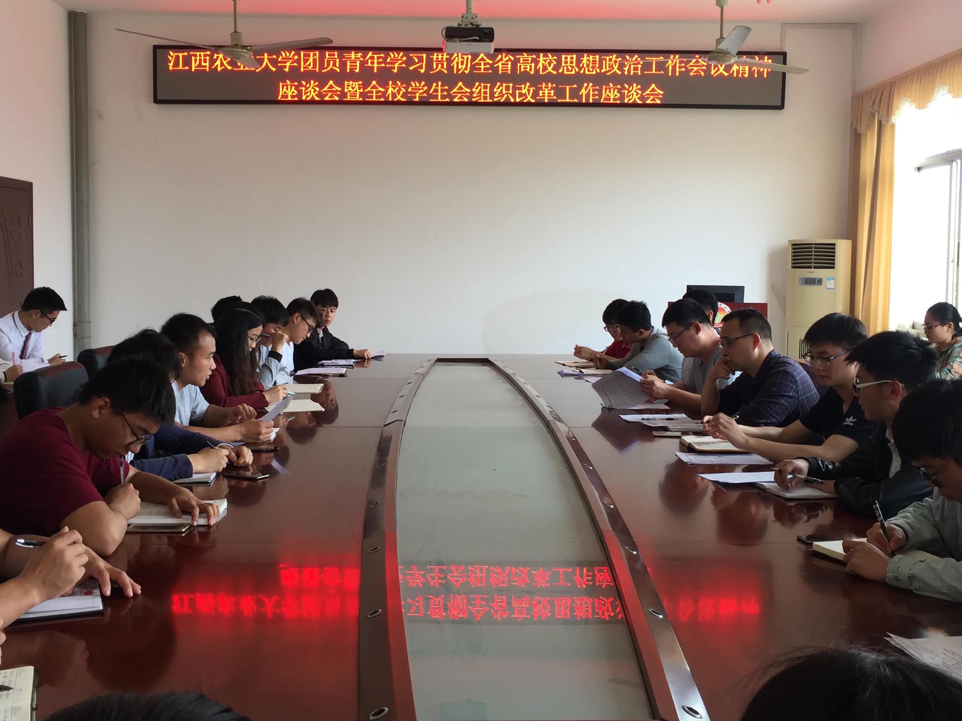 4月20日中午,ac米兰团员青年学习贯彻全省高校思想政治工作会议精神座谈会在大学生活动中心313会议室举行。校团委负责人、校学生会全体委员及各学院学生分会主席、团委学生副书记等50余人参加会议。