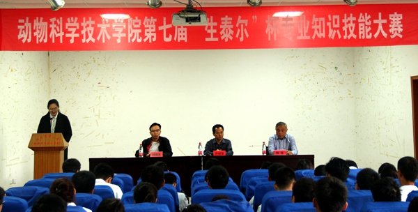 为浓厚学生的专业学习兴趣,锻炼同学们实践动手能力,4月23日,动物科学技术学院第七届“生泰尔”专业技能大赛在该院举行。副校长许斌华、校团委、动科院党委的相关负责人及各专业老师组成的评委团出席了开幕式。