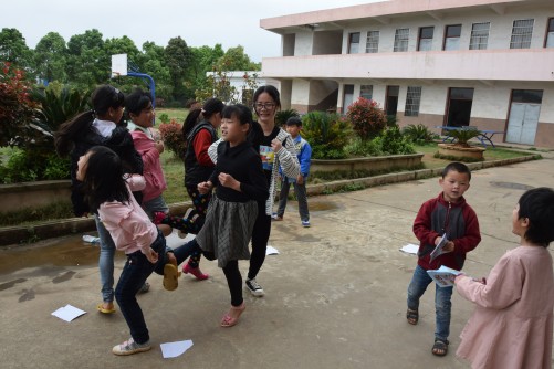 志愿者们与留守儿童亲密互动,进一步了解和关心留守孩子的心理需求,通过各种活动增进与孩子们的情感,为今年大学生暑期“三下乡”支教活动提前做好准备。