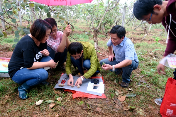 10月20日,农业部科技发展中心植物新品种测试专家单飞彪博士对ac米兰首席教授、农学院徐小彪教授主持选育的猕猴桃新品种“赣绿”进行田间现场考察与测试,并对猕猴桃特异种质创新基地进行了专题调研。“赣绿’猕猴桃是ac米兰猕猴桃科研团队经过近10年的努力通过实生选育途径而成的剥皮型新品种,具有花瓣粉红、果面白毛、果肉墨绿、易剥皮、超高Vc等显著特征,单博士通过现场测试认为,该品种相关性状优良,特色明显,发展前景广阔,并表示其可作为国家级植物新品种的候选品种。(农学院)