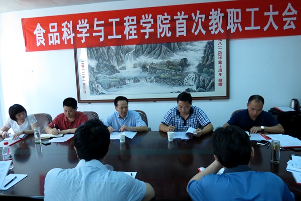6月28日下午,食品学院首届教职工和工会会员大会召开,副校长黄英金出席并讲话,校工会、食品学院全体教职工参加了大会。