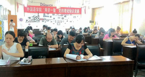 在建党95周年之际,为了扎实开展好“两学一做”第二阶段的学习研讨活动,6月30日,外国语学院组织开展了“两学一做”党的理论知识竞赛活动。学院全体教工党员和学生党员踊跃参与。