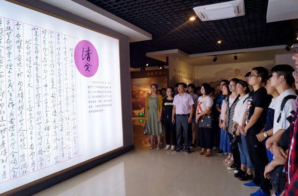 仪式结束后,全体党员集中参观方志敏烈士事迹陈列室,每到一处,每位党员仔细观看史实资料,详细了解当年方志敏等革命先烈的革命斗争史,感受早期共产党人所走过的充满磨难的历程和他们高尚的人格魅力,回顾方志敏烈士在极端困难的条件下坚持革命,同敌人浴血奋战的英雄事迹。在方志敏烈士事迹陈列室,全体党员还一起轻声诵读了《清贫》。