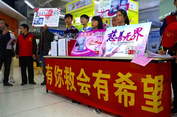 此次活动是为江西省于都县马安乡村民钟金发筹集治病款项。志愿者们与其它高校的志愿者密切配合,通过呼喊口号、分发爱心募捐倡议书等方式向过往群众宣传募捐,最终筹集了可观的善款。(人文院杨联华 林枫)