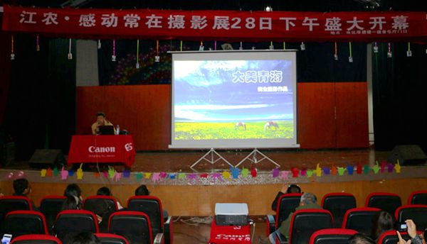 现场共设两个展棚、两名模特及十余台佳能单反相机供学生使用,期间广角镜头的运用深受同学们的喜爱,使同学们更好地理解了摄影。活动还邀请中国摄影家协会理事周梅生老师作摄影专题讲座,周老师分享了自身的摄影经历,向同学们展示了《大美青海》系列摄影作品,突出体现摄影的独特魅力,并以“一半书房,一半路上”的理念阐释对摄影的追求。(人文院 程磊 韦汝铮 胡婷)