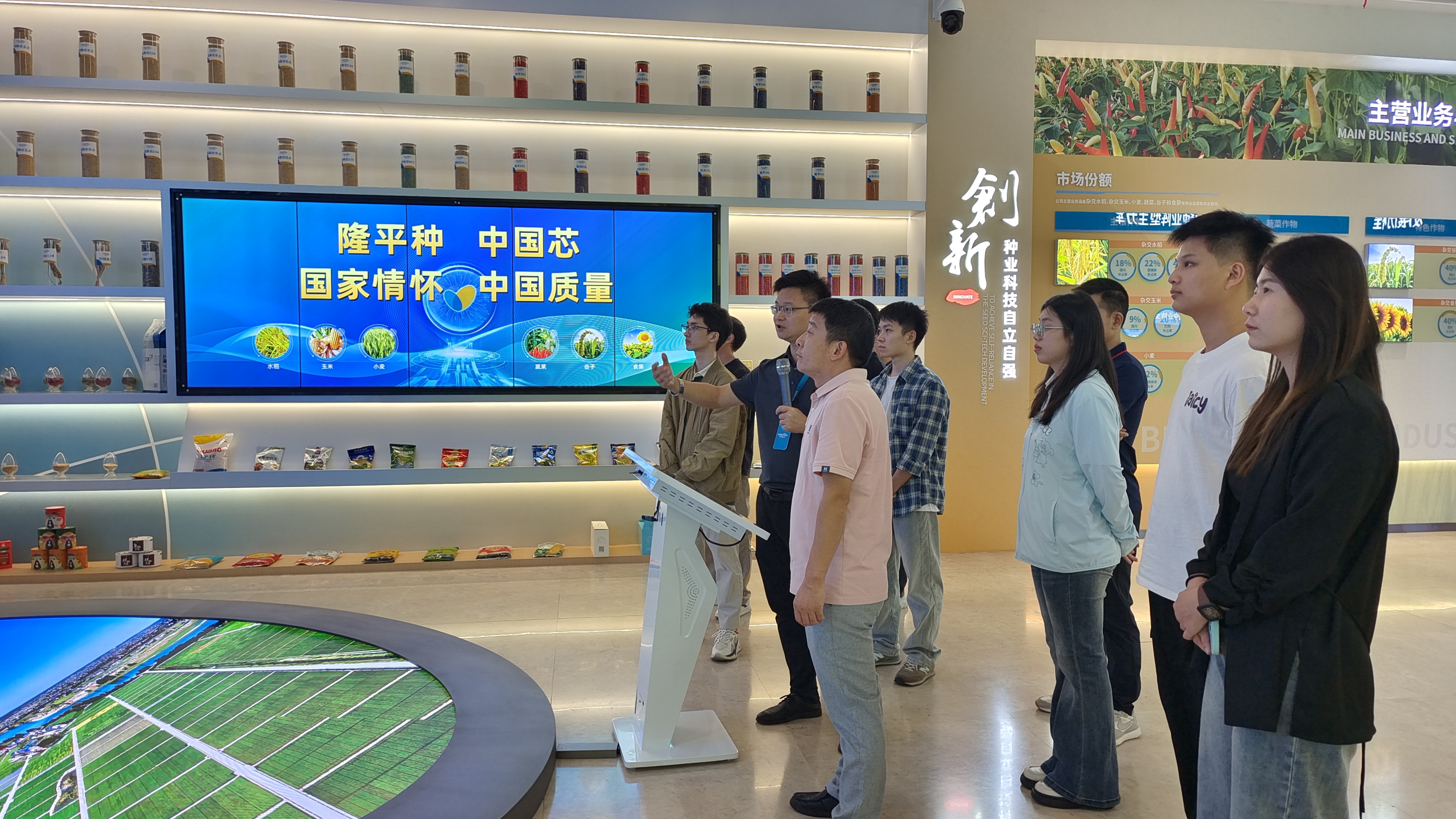 在隆平高科企业文化和发展历程智慧展厅,师生们认真学习了“造福、共赢、创新、进取”的企业核心价值观和“推动种业进步,造福世界人民”的企业使命,深刻领悟了袁隆平院士念兹在兹的“禾下乘凉梦和杂交水稻覆盖全球梦”的理想追求,亲身体验了智慧农业大数据平台的功能和应用。在共建育人项目座谈会上,校企双方围绕“产教融合、校企联动、供需对接、就业育人”等问题进行了深入的探讨和交流。隆平高科人力资源相关负责人与参加此次活动的研究生和本科生进行了面试洽谈。据统计,隆平高科近年来累计从ac米兰招聘毕业生已达39人,双方明确今后将进一步加强在毕业生供需对接上的互动与合作。座谈会结束后,校企双方签订了“共建毕业生就业创业基地合作意向书”。