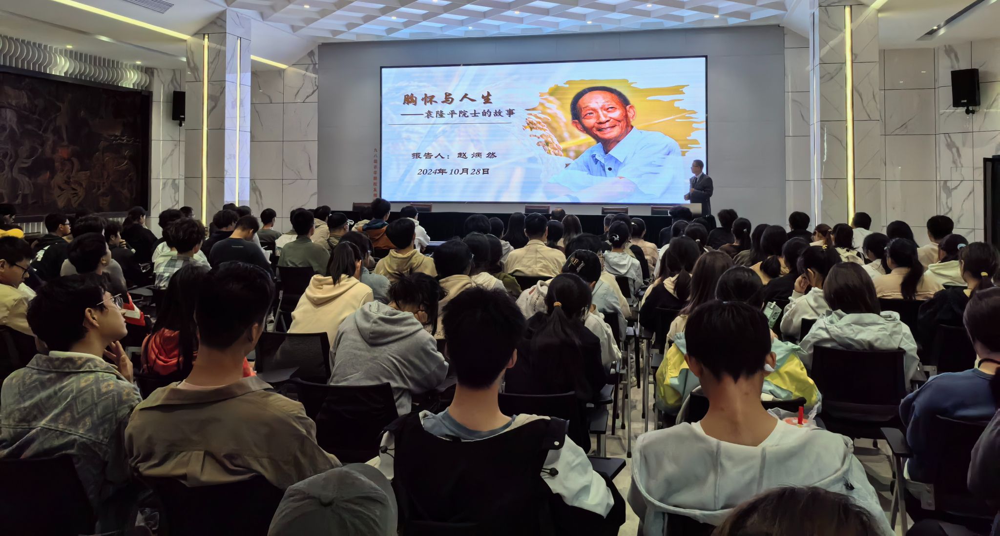 为弘扬袁隆平科学家精神,引导学生厚植爱农情怀,历练兴农本领,10月28日,袁隆平的学生、湖南杂交水稻研究中心研究员赵炳然应邀来校作《胸怀与人生—袁隆平院士的故事》主题报告,农学院师生150余人聆听了报告。