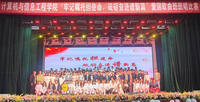 为扬爱国主义精神,11月5日晚,计算机与信息工程学院“牢记嘱托担使命,砥砺奋进谱新篇”爱国歌曲班班唱比赛在大礼堂举行,学院领导、班主任及辅导员老师参加本次活动。