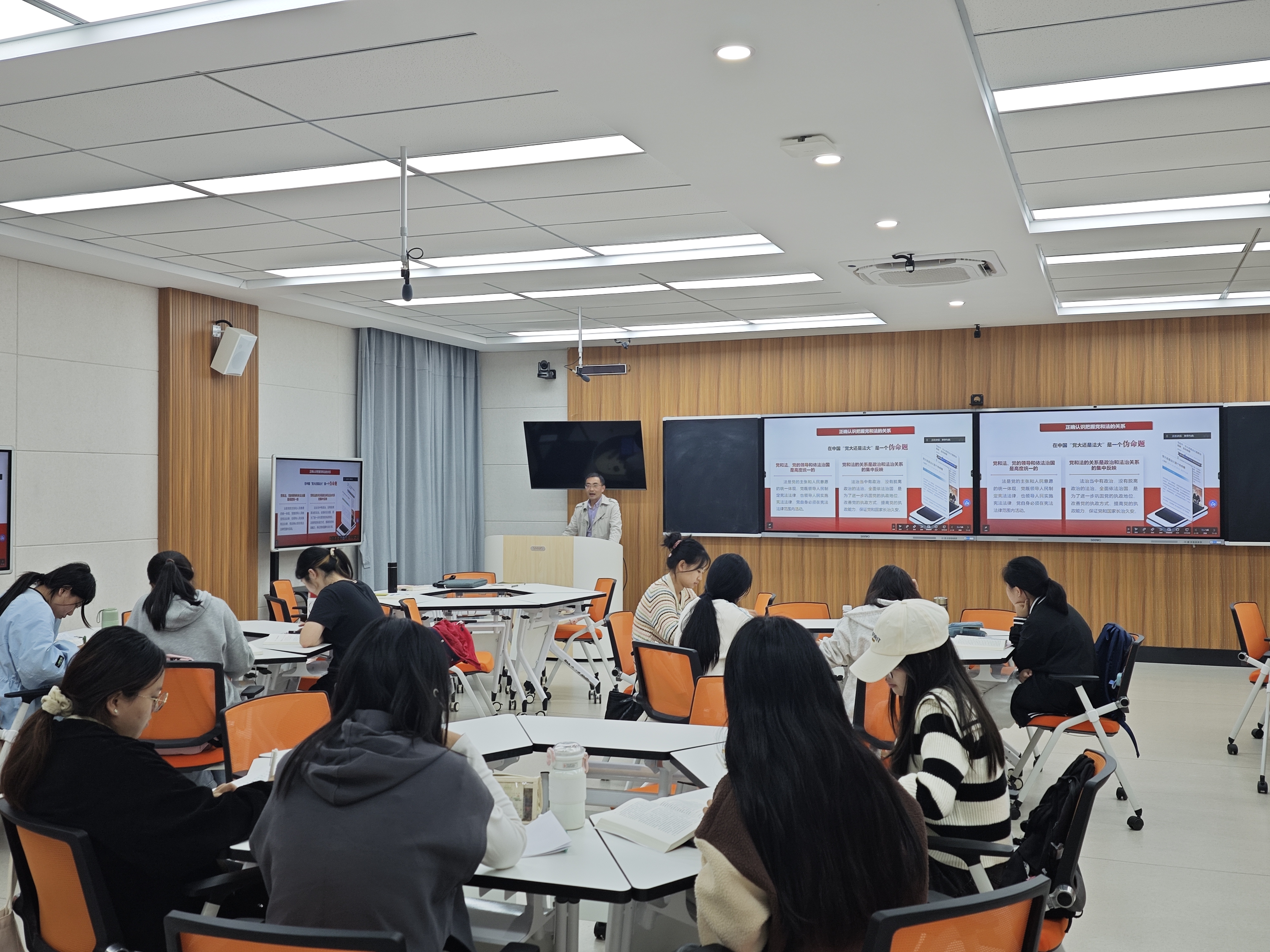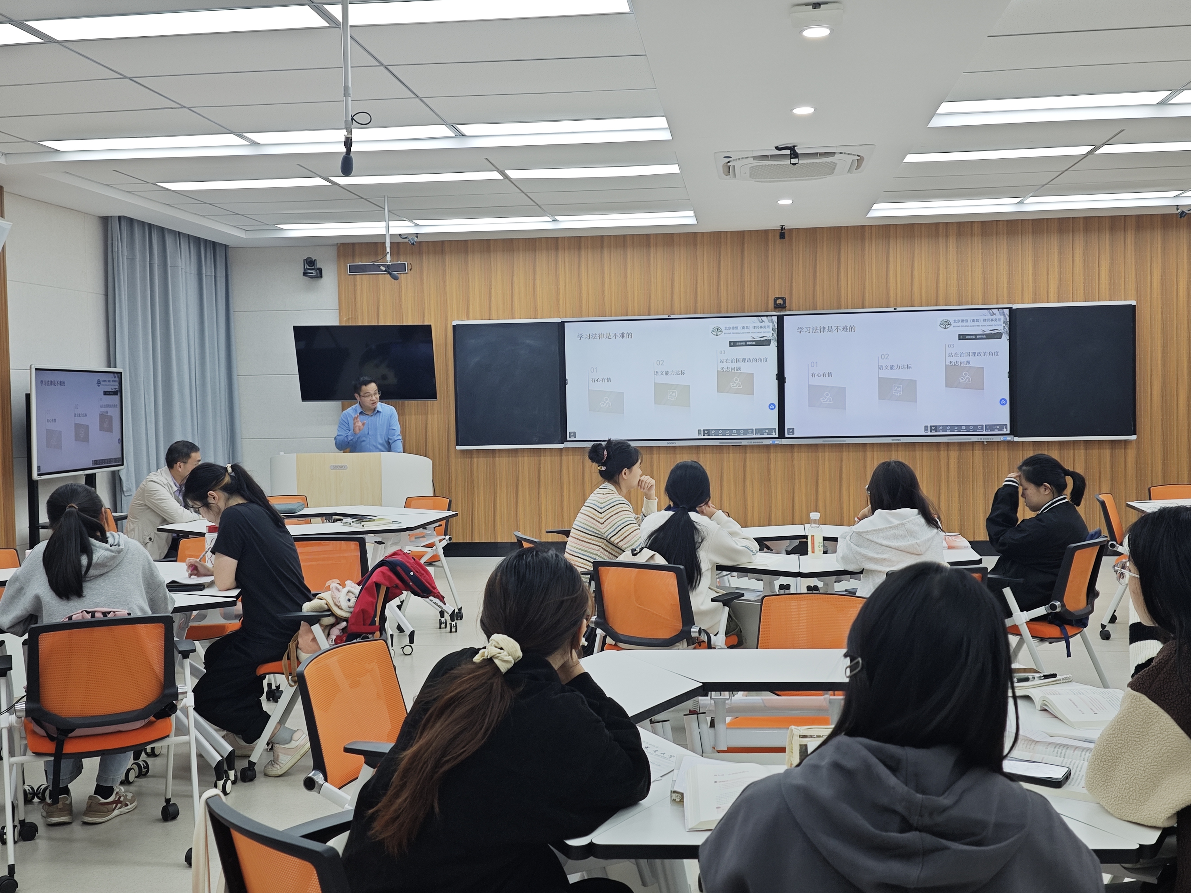 课堂上,同学们还与两位老师进行了互动交流。大家纷纷表示,通过学习进一步深化了对全面依法治国的认识,深刻感悟了习近平法治思想的真理力量和实践伟力。