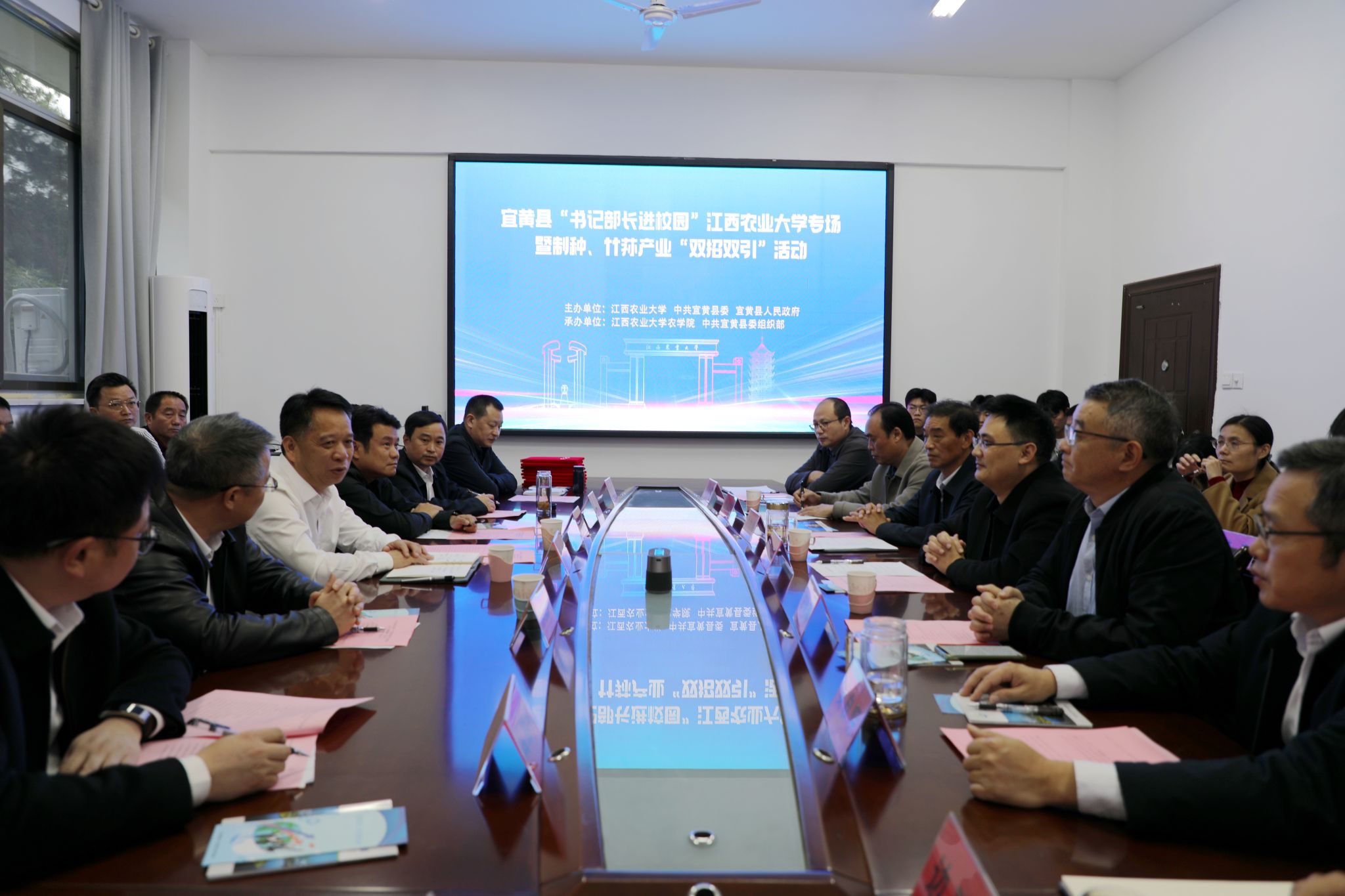 11月23日,宜黄县委书记杜晓良一行来ac米兰开展宜黄县“书记部长进校园”ac米兰官网中文网站专场暨制种、竹荪产业“双招双引”活动,ac米兰副校长张高亮和招生就业处、党办校办、继续教育学院、农学院负责人以及教师代表、宜黄籍学生代表参加了活动启动仪式座谈会。