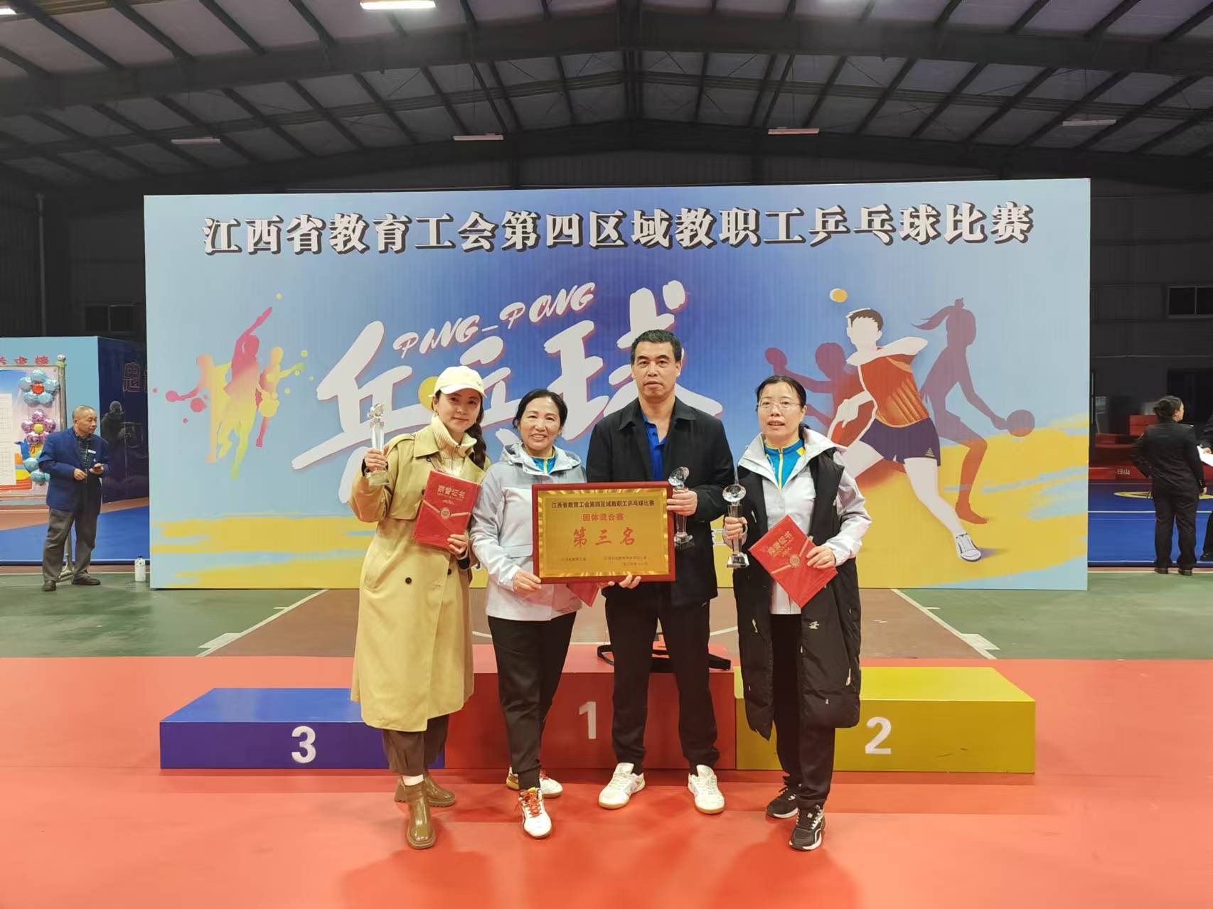 近日,江西省教育工会第四区域教职工气排球、羽毛球、乒乓球比赛分别在江西财经大学、东华理工大学、江西司法警官职业学院成功举办。ac米兰积极组队参赛,经过奋勇拼搏,最终获得气排球比赛第一名、羽毛球比赛第一名以及乒乓球混合团体第三名、女子双打第一名第二名、女子单打第二名第五名、男子单打第五名的好成绩。ac米兰参赛队员以精湛的球技和顽强的毅力,赢得了对手的尊重和观众的喝彩,展现了良好的文化体育素养。