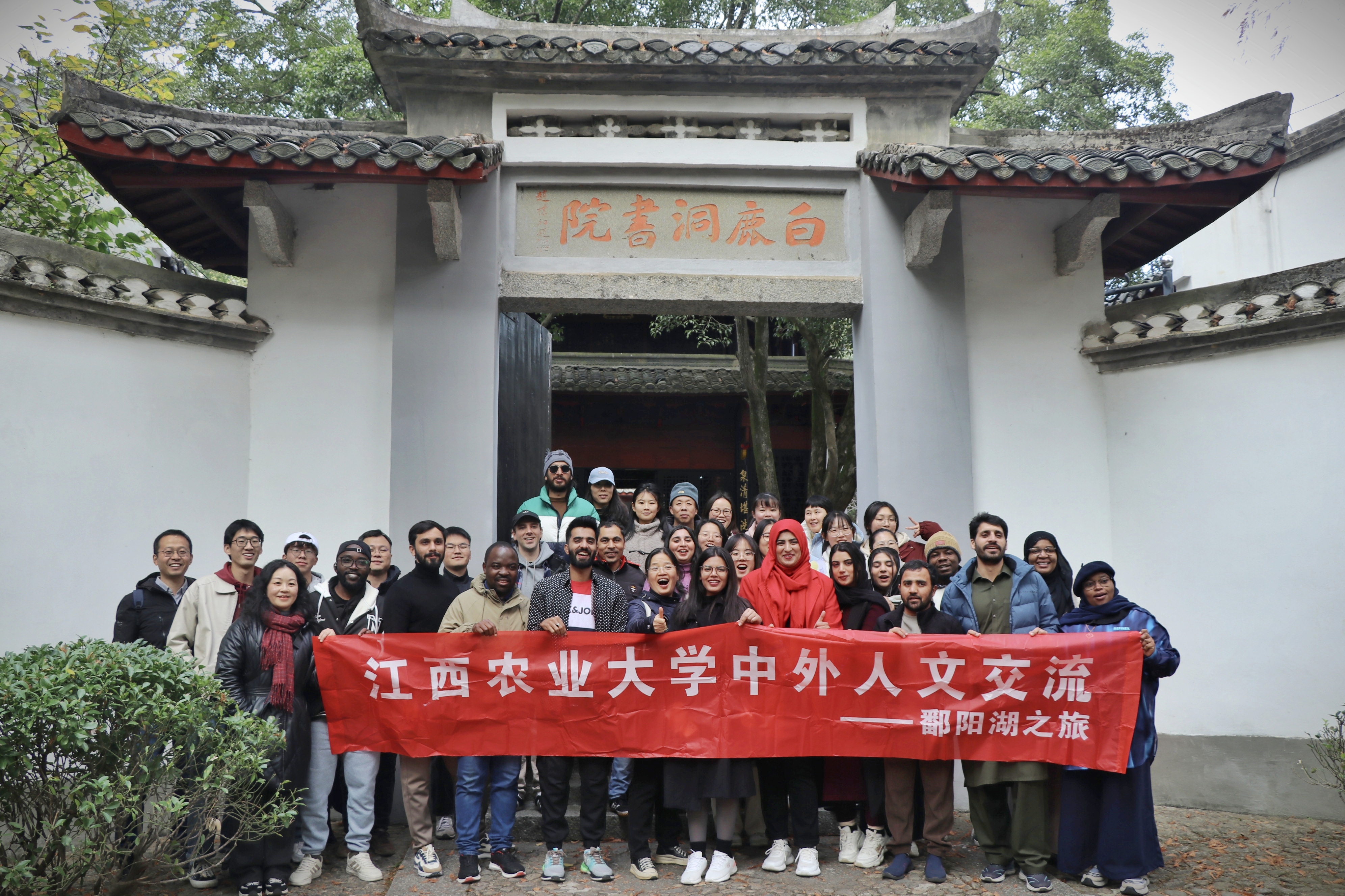 活动中,带队老师先后带领中外学生参观了观音桥、白鹿洞书院和吴城候鸟保护区。在白鹿洞书院景区,中外学生参观了贤书院、朱子祠、白鹿书院等历史建筑,了解了书院的历史和文化,走过状元桥,在孔子画像前追思先贤,体验古代书院的教学氛围和文化传承。在鄱阳湖湿地候鸟展示馆内,中外学生通过生动的展览和详细的解说,深入了解了候鸟的迁徙路线、生活习性以及保护现状。随后,同学们来到了吴城大湖池观鸟点和风景壮丽的望湖亭。来华留学生同学校师生进行互动交流,提问解惑,分享自己的感受和见解。
