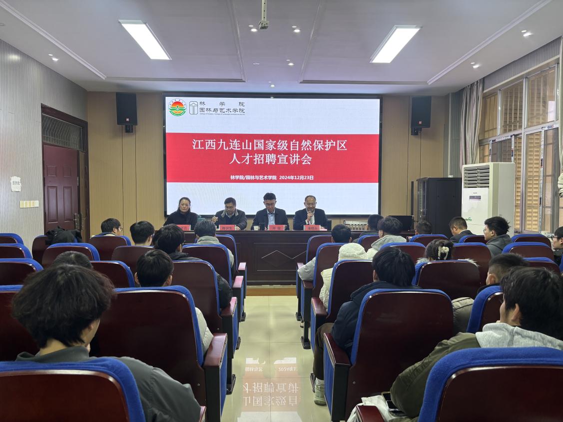 12月23日,九连山国家级自然保护区在林学院/园林与学院开展生物多样性宣讲进校园活动暨人才招聘宣讲会。九连山保护区局长邓俊、副局长凌晓夫、林学院负责人以及部分师生代表参加本次活动。