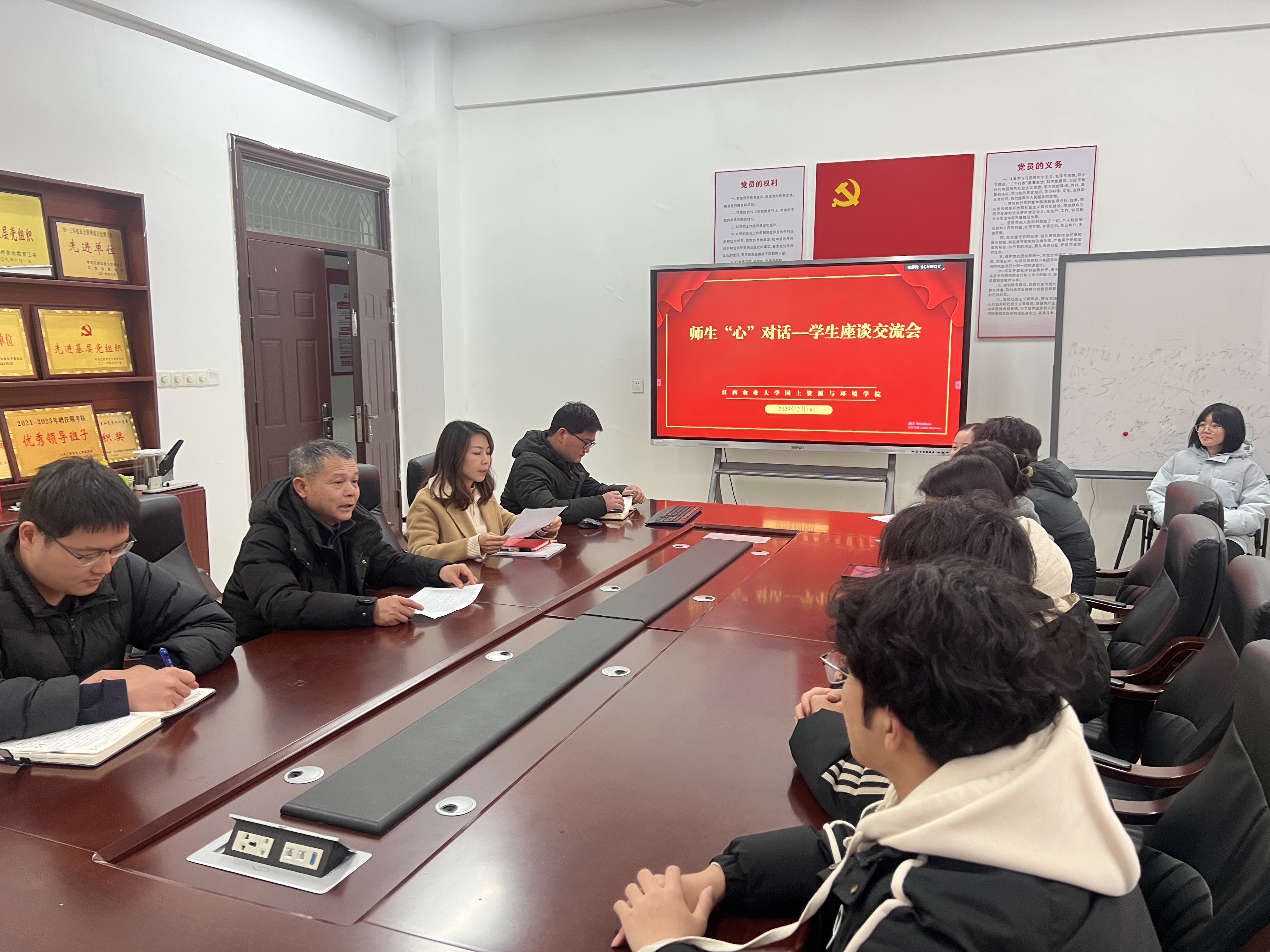 乘势而上开新局,砥砺奋进启新篇。为进一步加强学院领导、教师与学生之间的沟通,深入了解学生在学习、生活中遇到的实际问题,推动学院教育教学和管理服务的优化升级,近日,国土资源与环境学院举办了以“师生‘心’对话”为主题的座谈会。学院领导班子成员及来自各年级的学生代表参加了此次座谈。