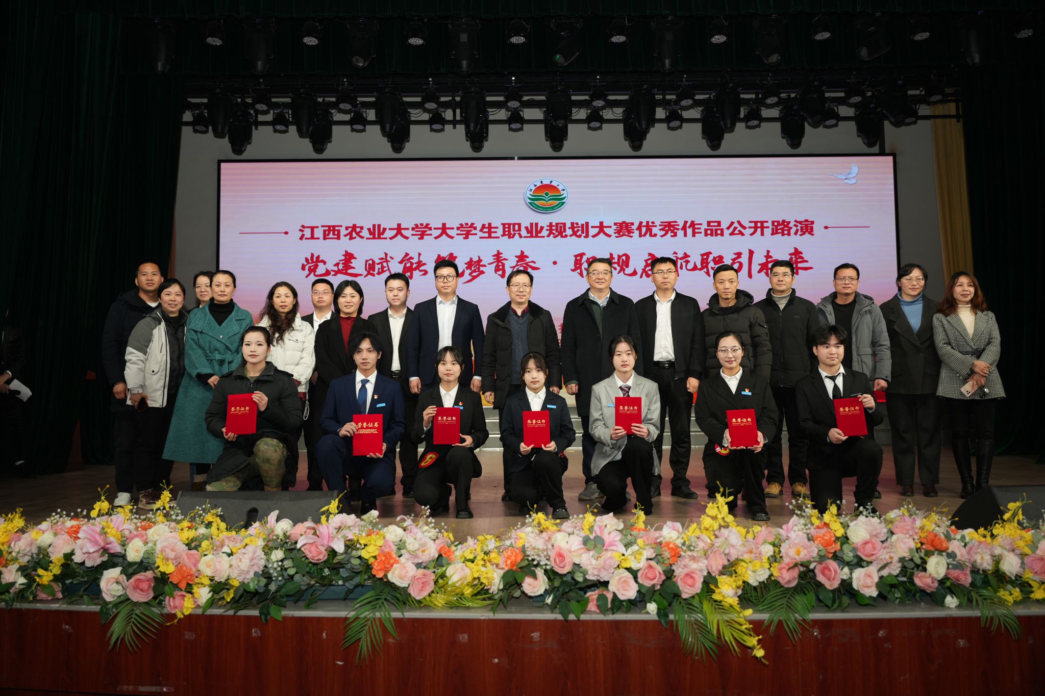 本次路演活动心选团嘉宾由双胞胎(集团)股份有限公司等7家省内知名企业相关人员担任,在嘉宾投票环节,园林与艺术学院林学2201班郭子伊同学得票数最多,获“最佳人气奖”。活动现场还对ac米兰2024年职业规划大赛“优秀作品奖”“优秀指导老师奖”“优秀组织奖”进行了颁奖。