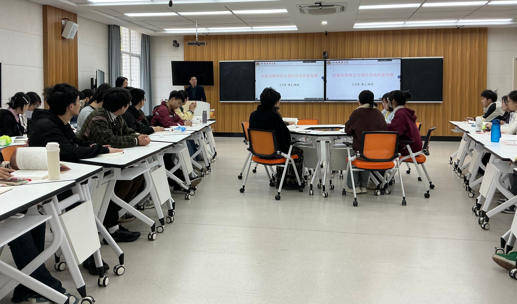 王文君结合国际国内形势与自身工作经历,深入阐述了高质量发展的深刻内涵与显著特征。他强调,新发展理念既是破解发展难题、增强发展动力、厚植发展优势的关键,又是引领中国经济高质量发展的战略指引。通过生动的案例和深入的分析,同学们深刻认识到党的十八大以来我国经济建设取得的历史性成就、发生的历史性变革,深刻领悟了习近平经济思想的真理力量和实践伟力,进一步坚定了投身中国式现代化的信心与决心。