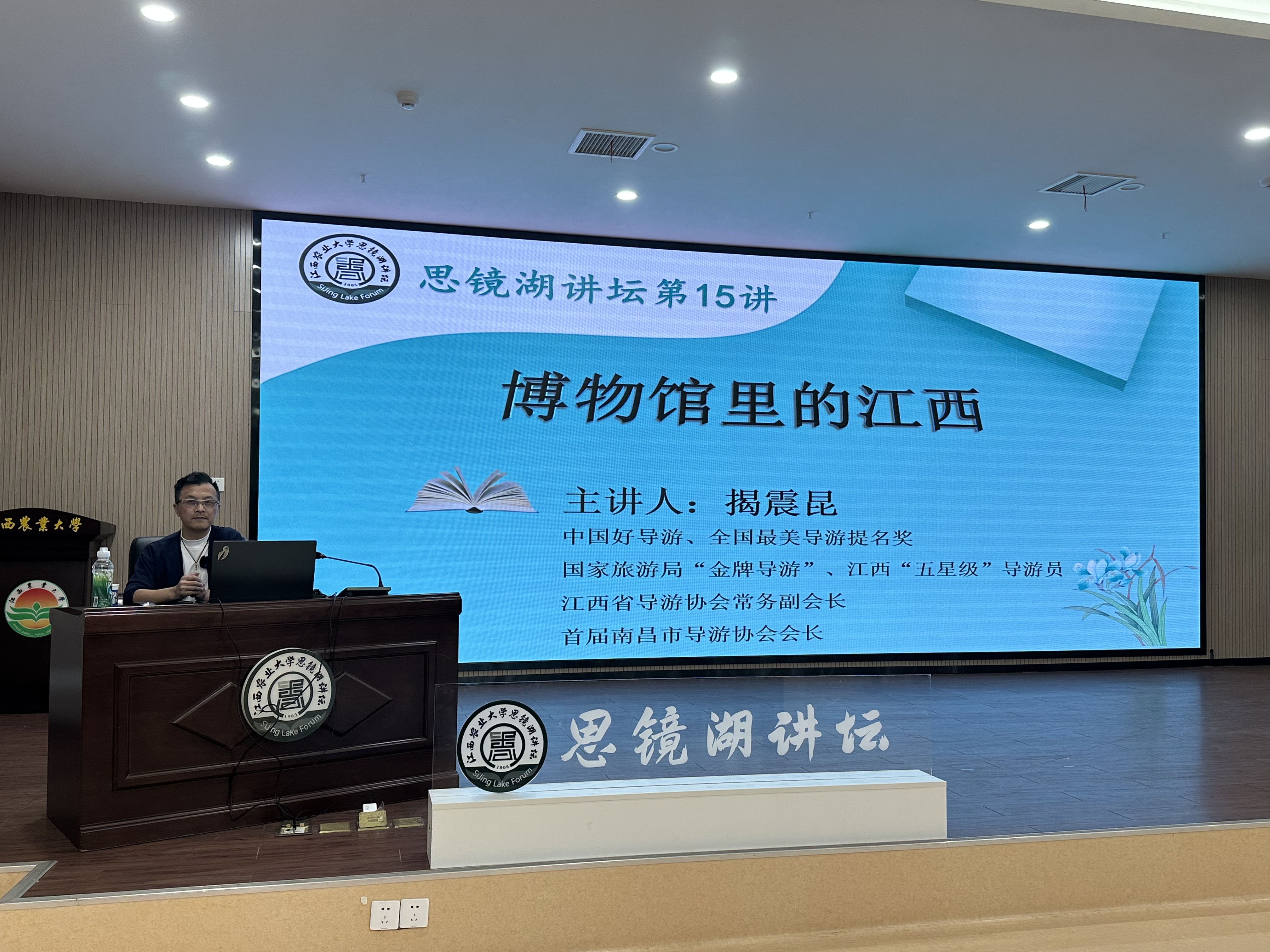 4月15日,学校思镜湖讲坛迎来了一场文化盛宴。江西省导游协会副会长、国家金牌导游揭震昆先生以《博物馆里的江西》为题,通过生动详实的文物故事,探寻赣鄱大地的历史密码,带领师生深入领略江西的历史底蕴与文化魅力。