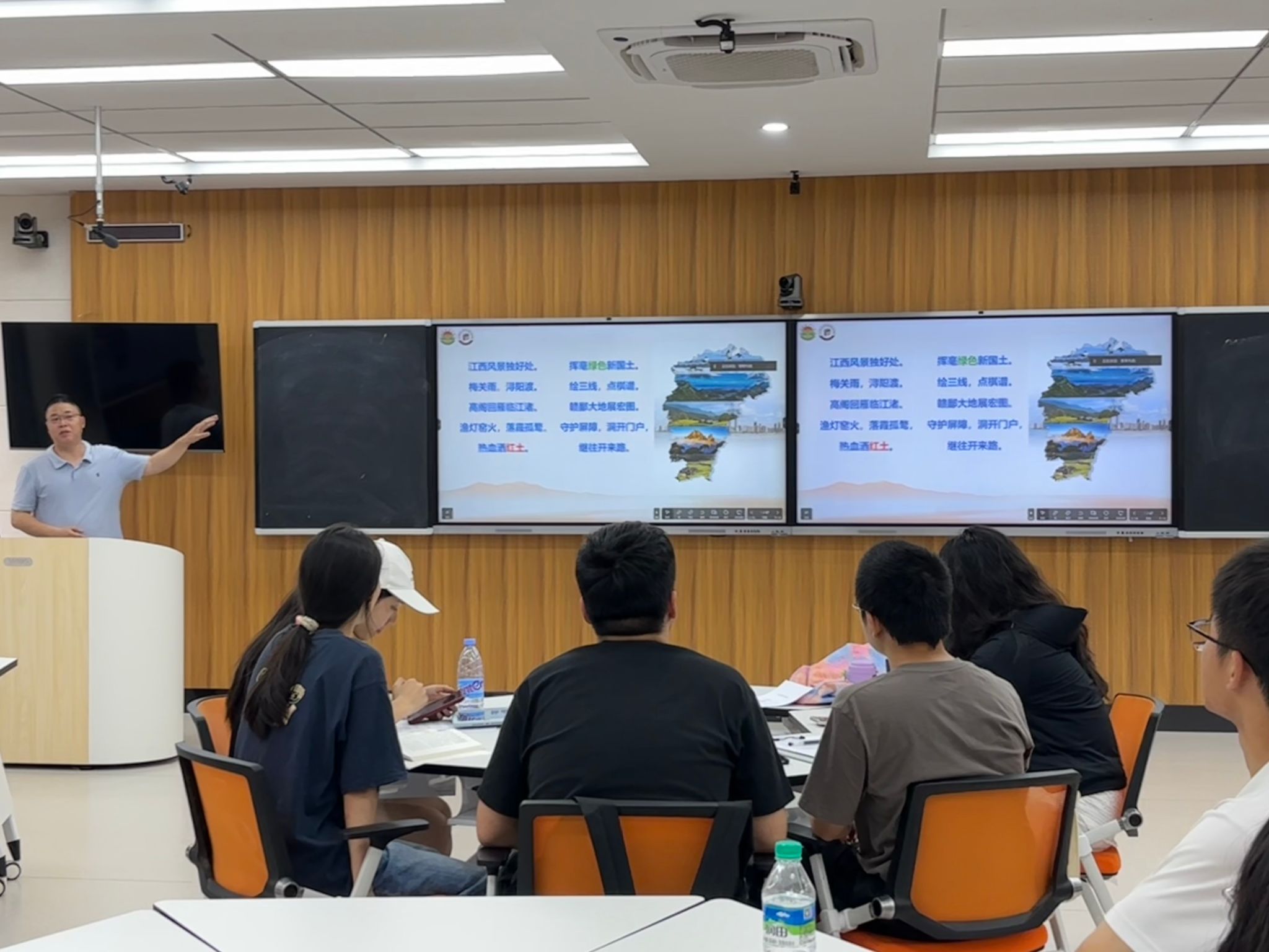 李海峰围绕“如何奋力书写新时代江西新篇章”这一主题,结合习近平总书记考察江西重要讲话精神,梳理江西绘就美丽中国建设江西篇章的生动实践。他以赣州阳明湖“养水富水”工程、上饶望仙谷废弃矿山“蝶变”、九江武宁生态产品价值实现机制的探索为例,讲述江西践行习近平生态文明思想的主要举措与成效。