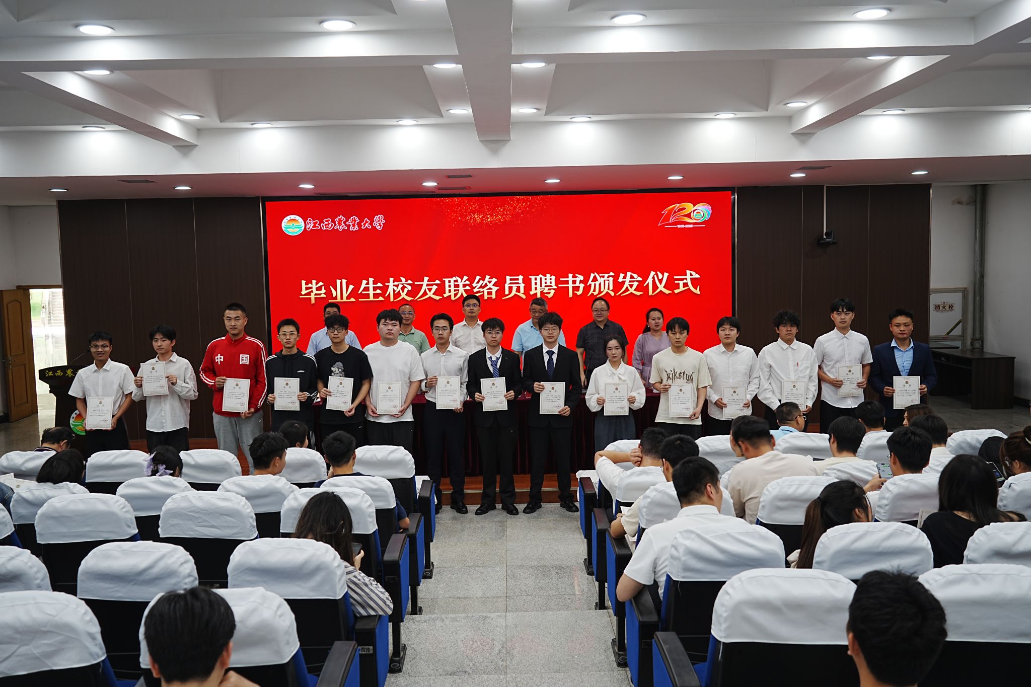 会议在庄严的国歌声中拉开帷幕。招生就业处负责人宣读了《关于聘任ac米兰官网中文网站2025届毕业生校友联络员的通知》,151 名毕业生正式成为校友联络员。2025届毕业生曹刚、丛超、江集宝作为受聘校友联络员代表发言,表达了对母校建校120周年的祝福和服务校友、奉献社会的决心。周佳慧同学代表全体联络员宣读《2025届毕业生校友联络员倡议书》,共同许下青春行动誓言。校领导与相关部门负责人共同为联络员颁发聘书。