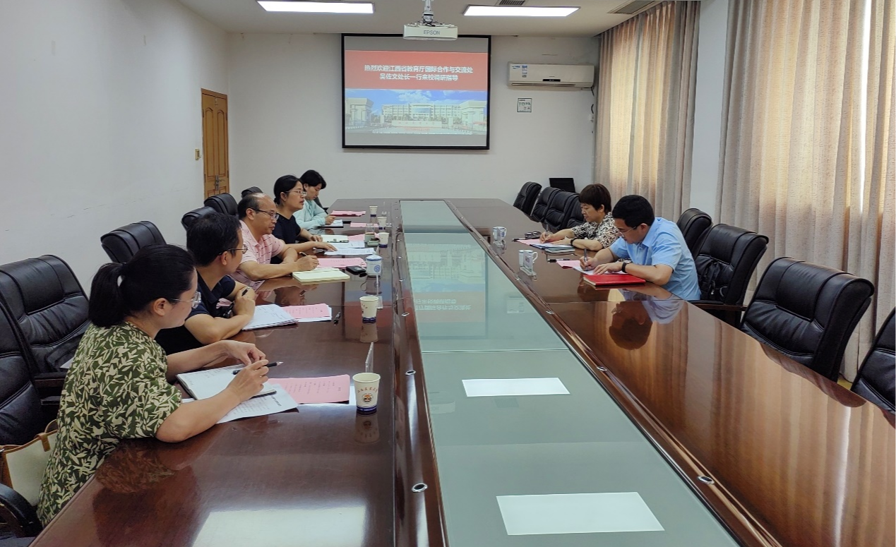 6月13日,省教育厅国际合作与交流处处长吴佐文、一级调研员彭钢一行来校调研来华留学生教育管理工作。副校长刘木华出席座谈会,国际交流处负责人及相关工作人员陪同参加。