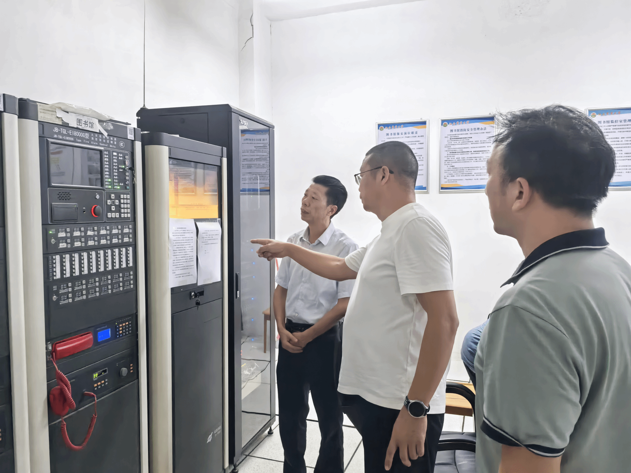 在校园消防24小时值守控制室,游金明详细查看了值班记录、设备运行状态以及报警信息处置流程,并现场测试了部分设备的联动功能。他强调,消控室是校园安全的第一道‘哨兵’,工作人员必须时刻保持高度警惕,熟练掌握应急处置程序,确保一旦出现火情,能够第一时间发现、第一时间处置。