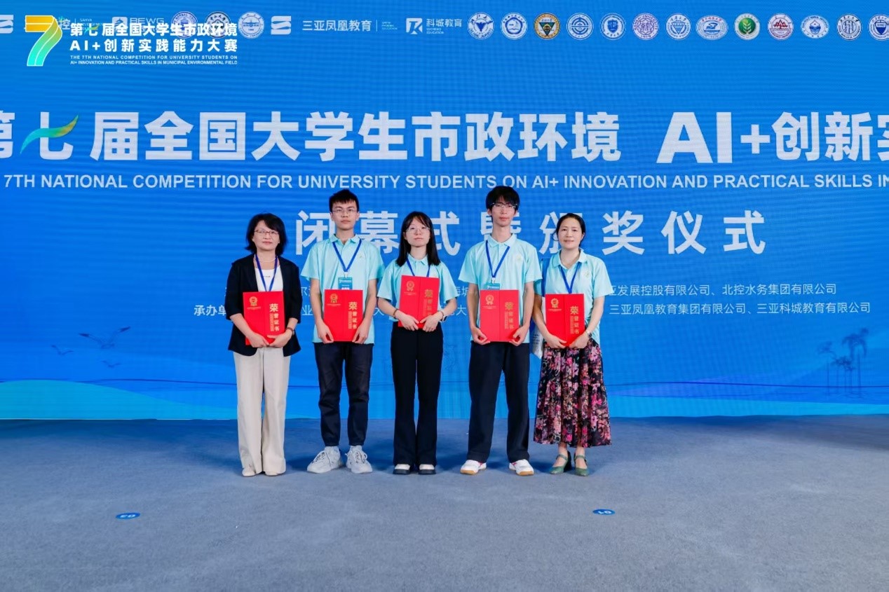 近日,第七届全国大学生市政环境AI+创新实践能力大赛全国总决赛在海南三亚圆满落幕。ac米兰国土资源与环境学院参赛团队在激烈角逐中表现优异,最终斩获全国总决赛二等奖。熊江波、王嵘两位老师荣获“优秀指导教师奖”,黄晶老师获“优秀领队”荣誉。