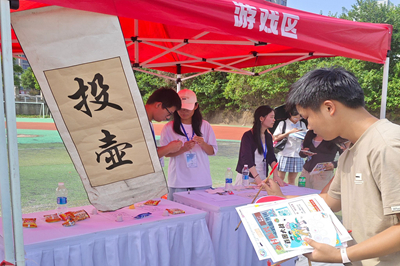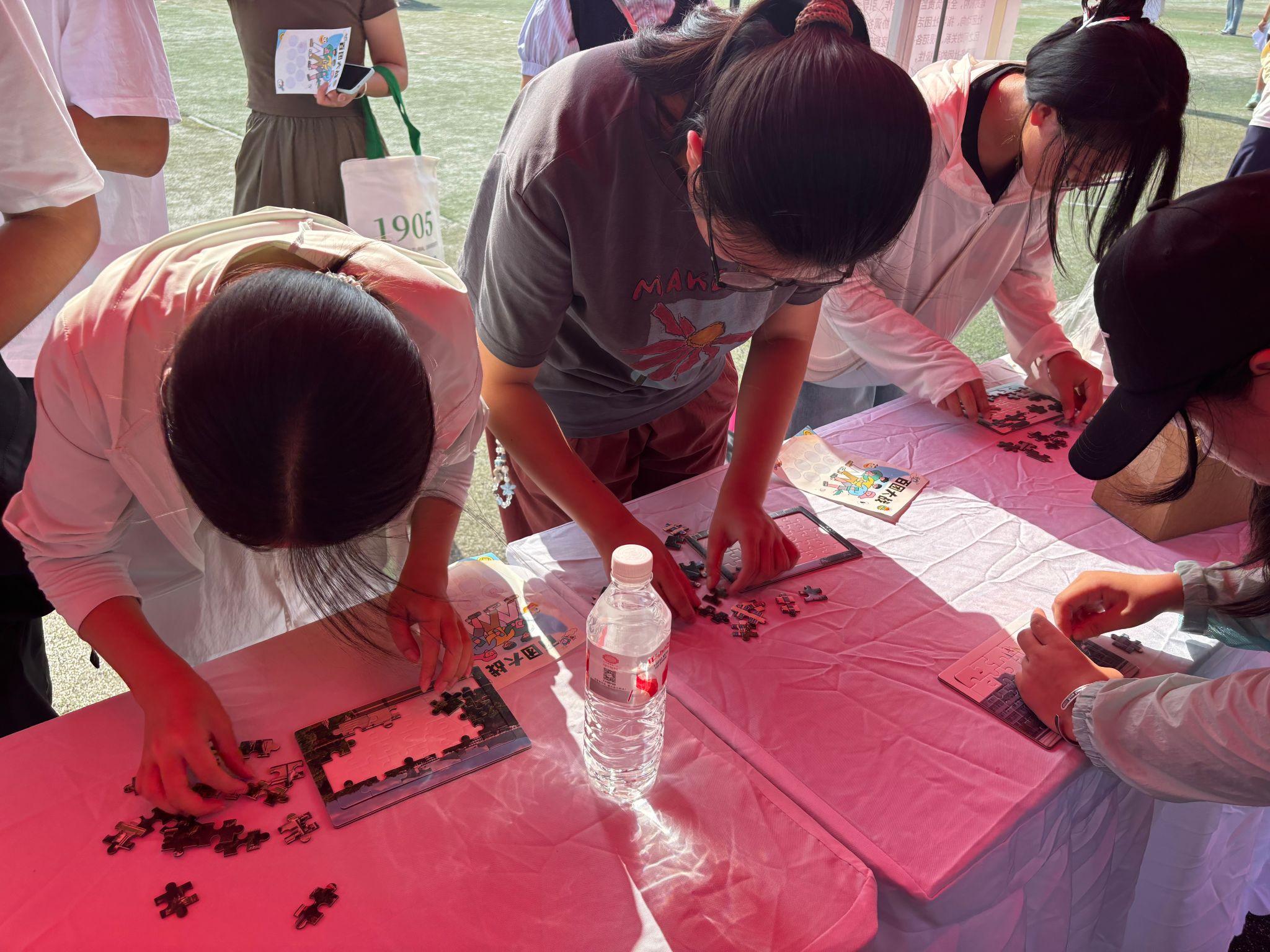 共庆百廿,让“情怀”更浓厚。恰逢建校120周年,活动现场“祝福母校120周年”签名墙上布满了师生对母校的诚挚祝愿;校史有奖问答活动寓教于乐,增进师生对学校百廿辉煌历程的了解;“我与社团共庆百廿”主题拼图、剪纸等活动,则巧妙融合了社团文化与校庆主题。一旁的游戏体验区同样欢声笑语,“看图猜成语”“投壶”“夹玻璃珠”“你画我猜”等传统与创意游戏吸引众多同学参与,大家通过打卡集章兑换奖品,在轻松愉悦的氛围中深化了交流,增进了情谊。
