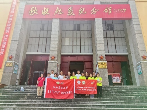在追忆红色历史中坚定理想信念。7月11日,“青春向新,助力振兴”实践团前往龙源口村进行实践调研和学习。在秋溪乡党支部旧址,大家认真聆听了井冈山革命斗争时期创建的第一个农村党支部在保卫红色政权,巩固湘赣边界根据地为革命作出的重大贡献。在老师的带领下,实践团重温入党誓词,铿锵有力的誓言进一步坚定了大家的理想信念和入党初心。7月10日,“助农致富,产业振兴”实践团来到铜鼓秋收起义纪念馆,大家详细了解了秋收起义的背景、秋收起义的爆发及秋收起义星火燎原等内容,通过观看历史文物、图片和文献资料,聆听红色故事,参观红色旧址等,追寻毛泽东革命军事生涯从这里开始的足迹,了解铜鼓在秋收起义革命中作出的巨大贡献。