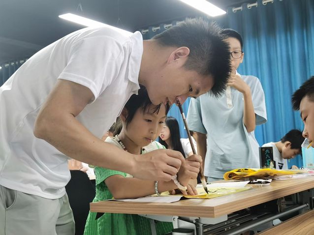 心理疏导,童心筑梦呵护成长。在东山村的童心港湾里,队员王邦根正在教小朋友体验剪纸艺术、练习软笔书法、绘制美丽画作,用“童言童语”讲授剪纸的文化内涵,一笔一划教小朋友书写汉字,耐心与小朋友们交谈,全面了解他们的学习、生活和理想目标,给小朋友普及心理健康知识,鼓励他们要拥有自己的梦想,积极面对生活中的困难,提升自我调节能力,促进儿童心理健康,共同守护美好未来。