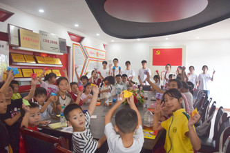 “红星闪闪放光彩,红星灿灿暖胸怀……”,近日南昌市高新区麻丘镇厚溪村村民活动中心传来阵阵高昂嘹亮的歌声,化学与材料学院暑期社会实践队队员带领厚溪村的小朋友们正在这里开展红色文化演出。这一红色活动已连续在厚溪村传承开展了4年。