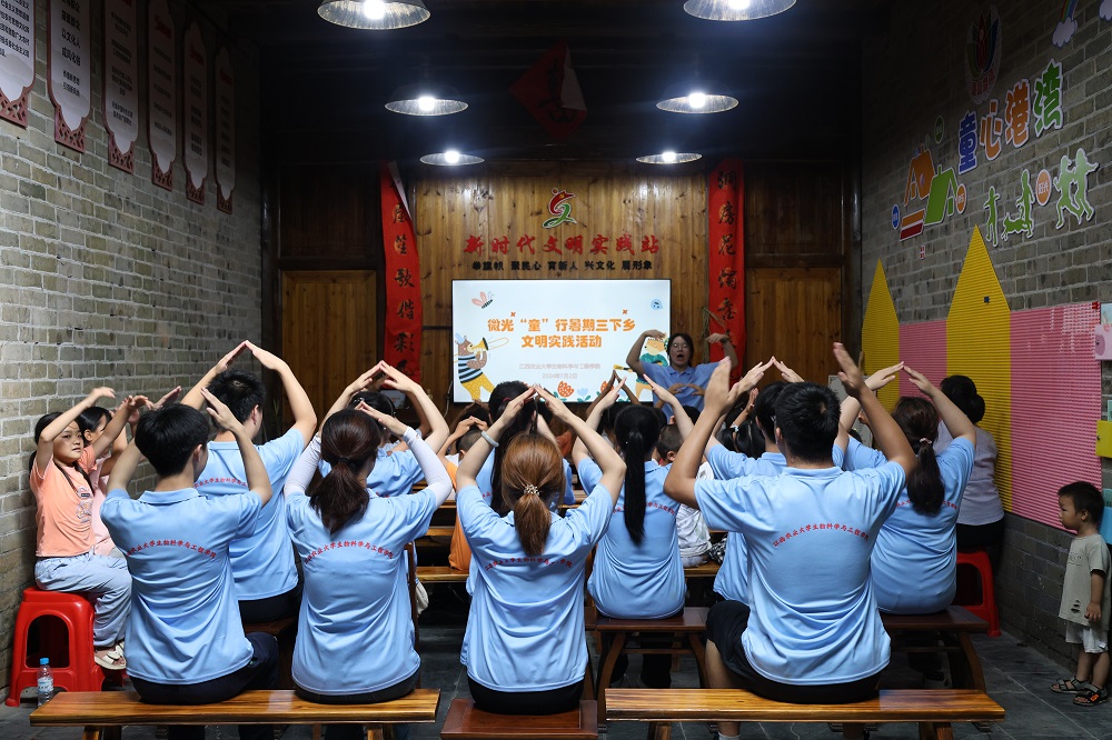 为深入学习贯彻习近平新时代中国特色社会主义思想,贯彻落实习近平总书记关于青年工作的重要指示精神,上好与现实结合的“大思政课”,争当有温度、有深度、有厚度的新时代青年,6月29日到7月5日,生物科学与工程学院“微光‘童’行”暑期三下乡文明实践队前往赣州市大余县、瑞金市,开展“挺膺担当励青春,微光‘童’行向未来”主题实践活动。