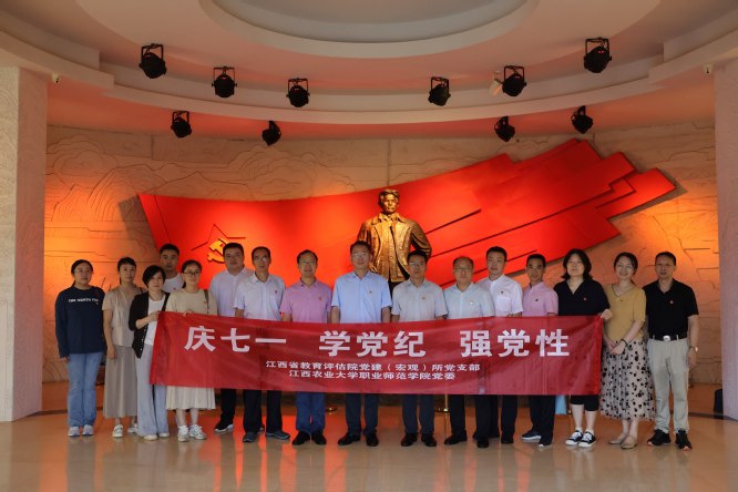 7月1日,江西省教育评估院党建(宏观)所党支部与ac米兰官网中文网站职业师范学院党委联合开展“庆七一 学党纪 强党性”主题党日活动,江西省教育评估院党建(宏观)所部分党员干部和ac米兰官网中文网站职业师范学院部分教师党员参加了本次活动。